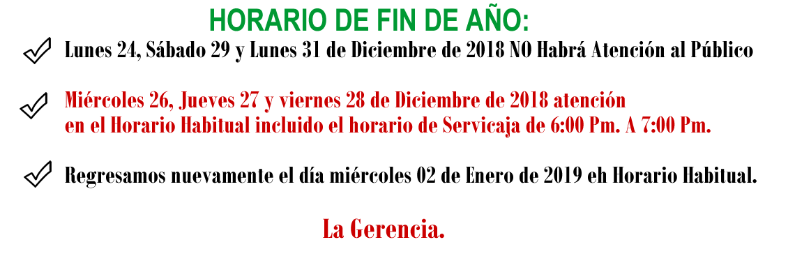 • 8:00 a.m. a 11:30 a.m. y de 2:00 p.m. a 4:30 p.m. de Lunes a Viernes.     Sábado 8:00 - 11:30 a.m.